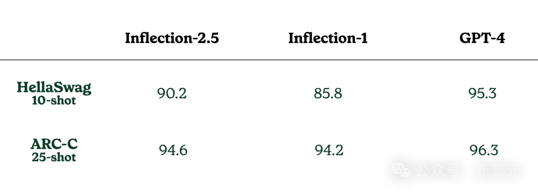 在涉及常识判断和科学知识的HellaSwag和ARC-C基准测试上,Inflection-2.5都展示出了卓越的性能。