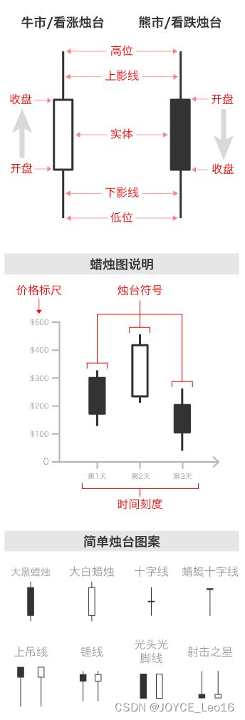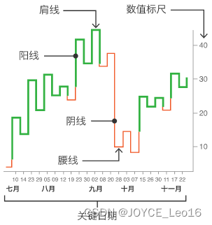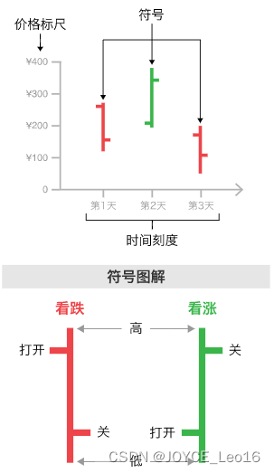 蜡烛图通过使用烛台式的符号来显示多种价格信息,例如开盘价、收盘价、最高价和最低价,每个代表单一时间段(每分钟、每小时、每天或每月)的交易活动。每个烛台符号沿着 X 轴上的时间刻度绘制,显示随着时间推移的交易活动。