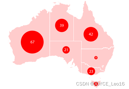 在这种数据地图中,指定地理区域上方会显示圆形图案,圆形面积与其在数据集中的数值会成正比。