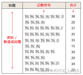 记数符号图表 (Tally Chart) 既是记录工具,也可通过使用标记数字系统来显示数据分布频率。