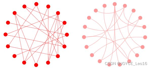 节点围绕着圆周分布,点与点之间以弧线或贝塞尔曲线彼此连接以显示当中关系,然后通过每个圆弧的大小比例再给每个连接分配数值。此外,也可以用颜色将数据分成不同类别,有助于进行比较和区分。