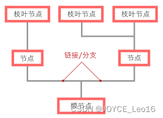 其结构通常由没有上级/父级成员的元素开始(根节点),然后加入节点,再用线连在一起,称为分支,表示成员之间的关系和连接。最后是枝叶节点(或称为末端节点),是没有子节点的成员。