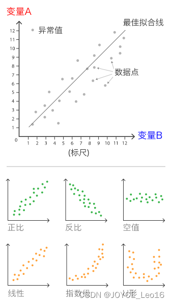 图表中可加入直线或曲线来辅助分析,并显示当所有数据点凝聚成单行时的模样,通常称为「最佳拟合线」或「趋势线」。