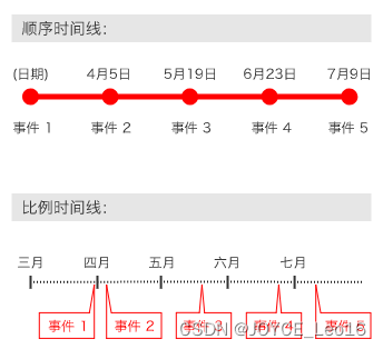 如果是按比例绘制的时间线,我们可以通过查看不同事件之间的时间间隔,了解事件发生的时间或即将在何时发生,从中查找时间段内的事件是否遵循任何模式,或者事件在该时间段内如何分布。