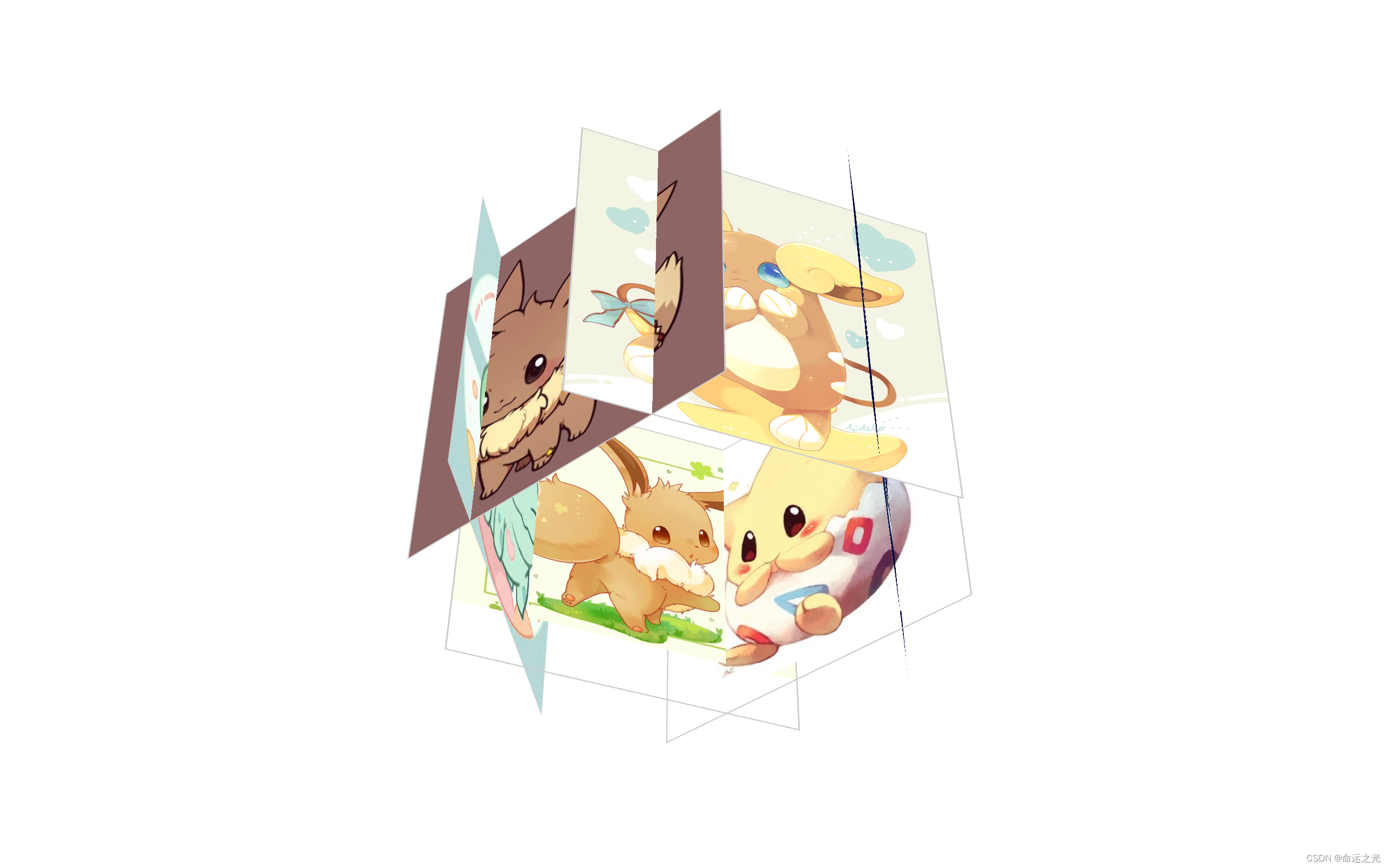 <img>元素,并将其放置在每个面的内部。我们还可以通过设置图像容器的样式来控制图像的大小和位置。