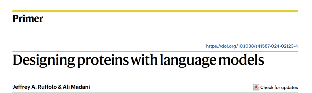 Ruffolo, J.A., Madani, A. Designing proteins with language models. Nat Biotechnol 42, 200–202 (2024).