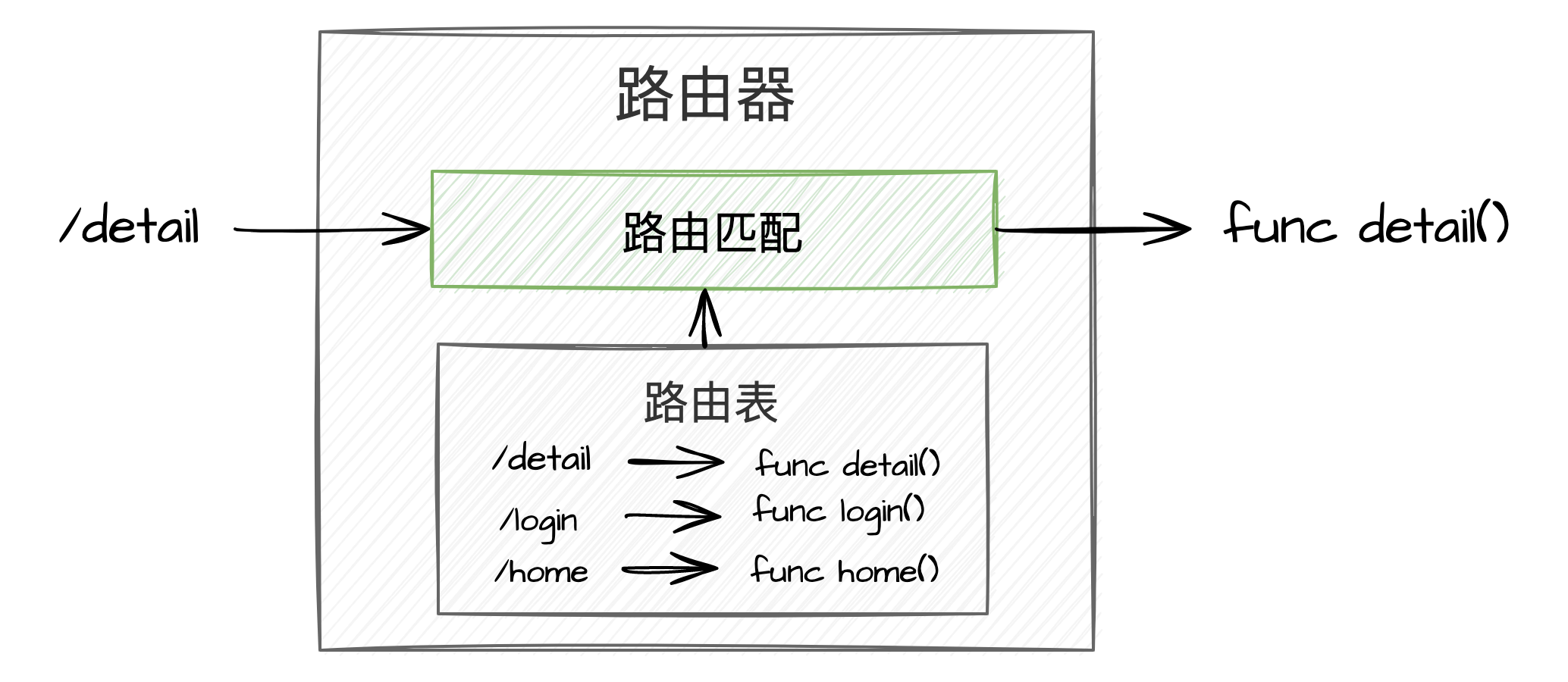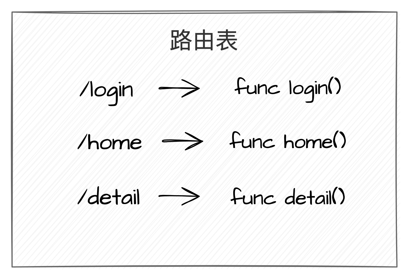 多条路由组成路由表。路由表主要用于路由查找,根据不同的路由表的组织形式,可以有不同的查找方法。最简单的路由表就是使用 map。直接以 key-value 的形式进行匹配即可。