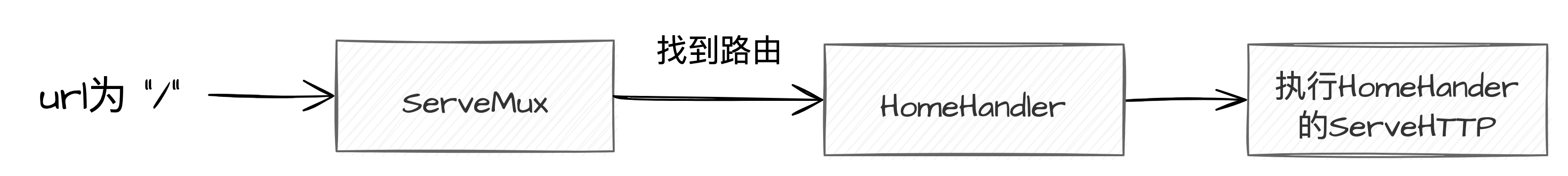 }在一开始的实例中,就是我们的 HomeHandler 的 ServeHTTP 方法。也就是说 ServeHTTP 方法是 net/http 包中规定好了要调用的,所以每一个页面处理函数都必须实现 ServeHTTP 方法。