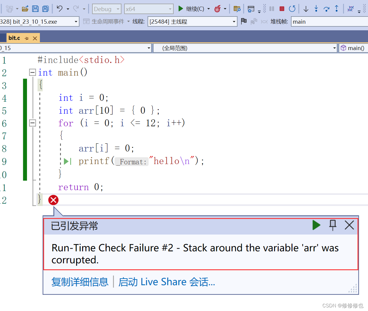 }这个例子我希望大家可以结合查看内存信息以及查看变量的方法来找出让程序陷入死循环的原因.