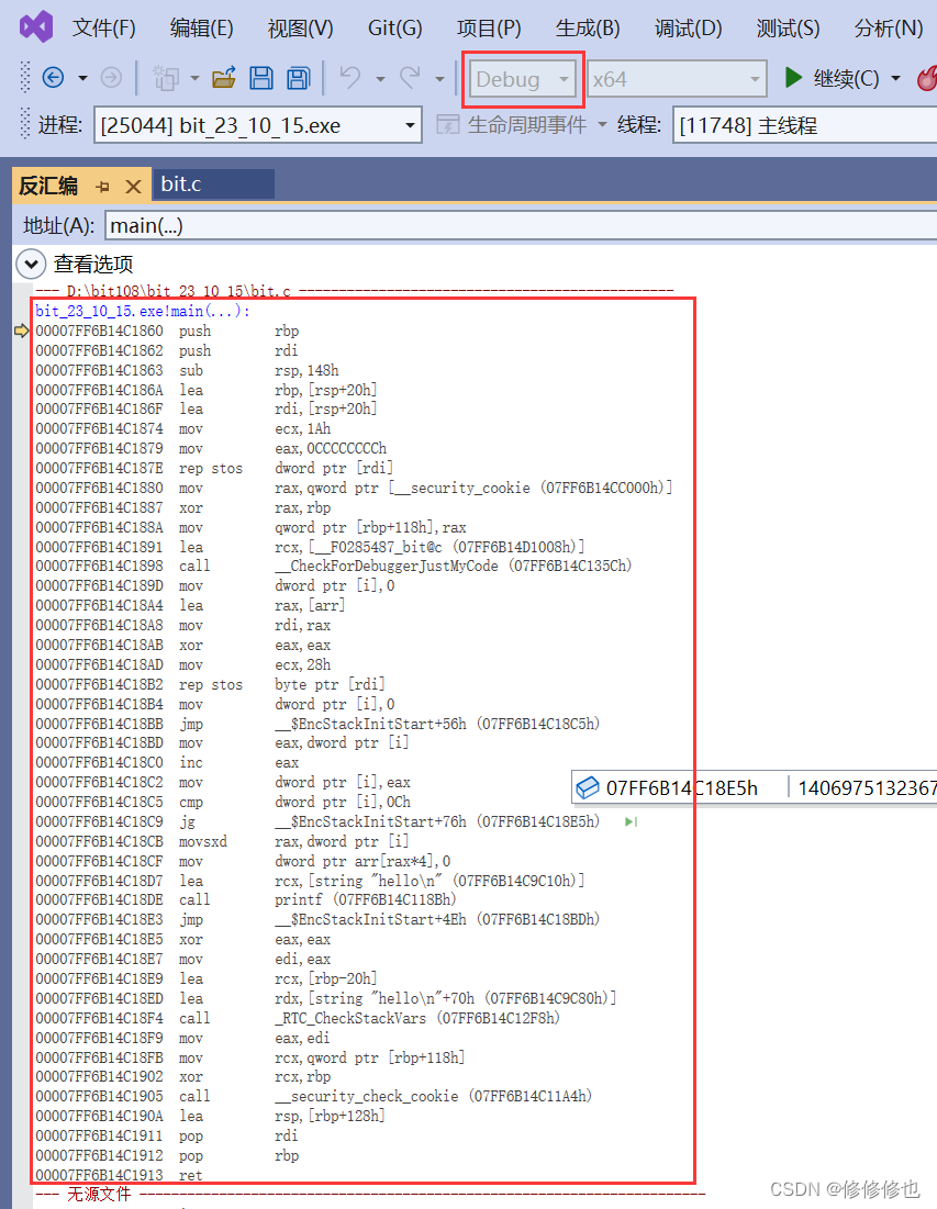 然后就可以查看汇编信息了: