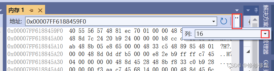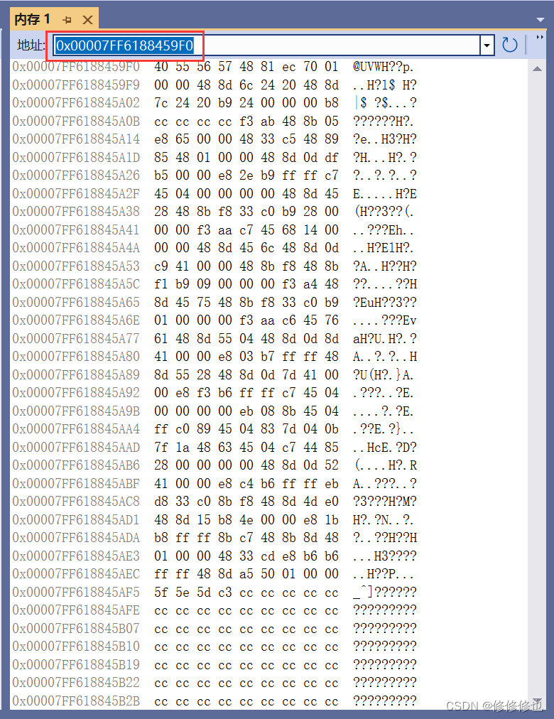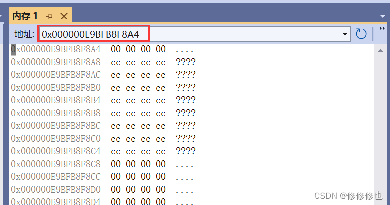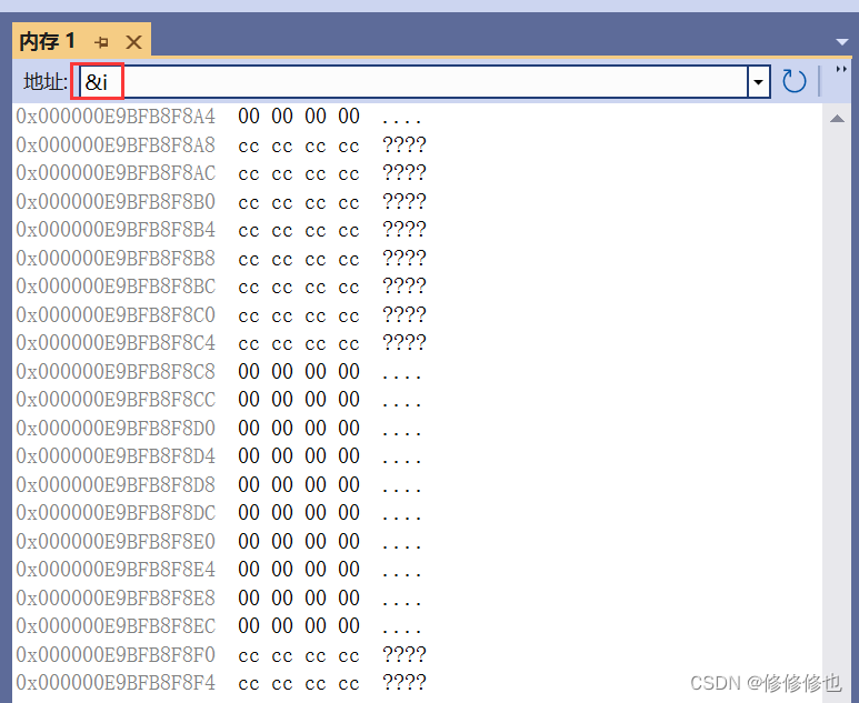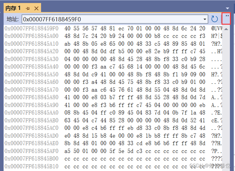 内存窗口如下:
