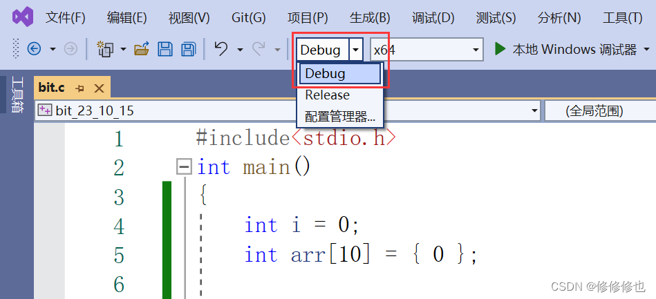 首先我们要在编译器中选择Debug选项,才可以进行正常调试: