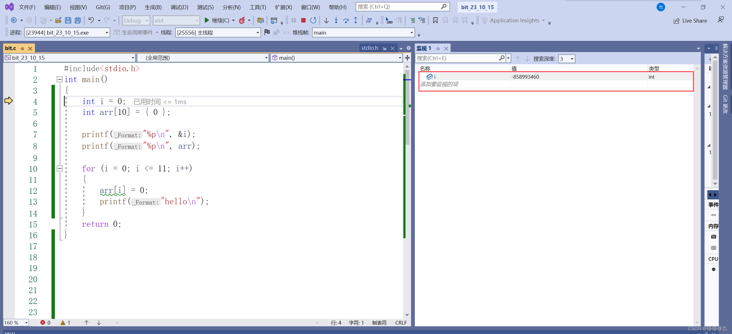 然后在监视窗口输入想观察的变量,敲下回车就可以观察这个变量了.