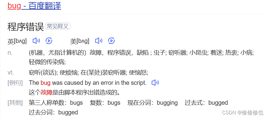 先来看看百度翻译对Bug的解释: