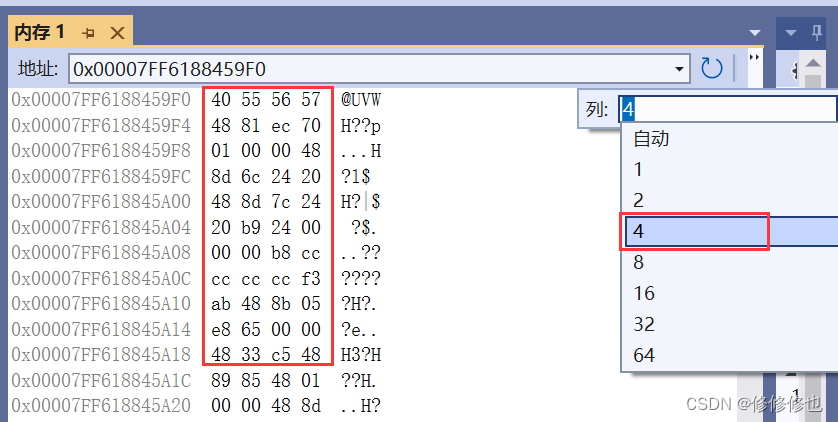 如果不习惯看16列的数的话,也可以选择将它改为4列: