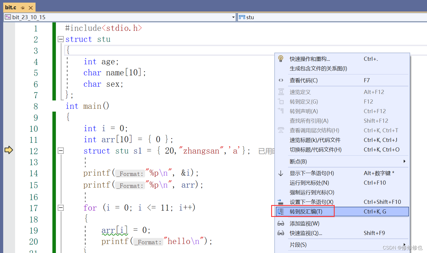 逐语句,就是每次都执行一条语句,但是这个快捷键可以使我们的执行逻辑进入函数内部(这是最常用的)