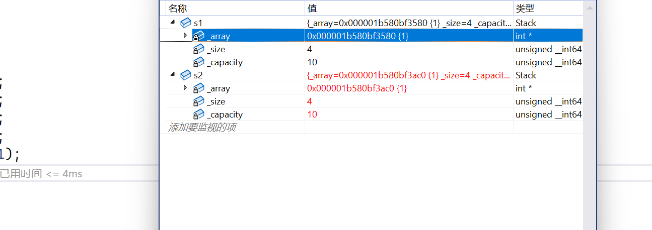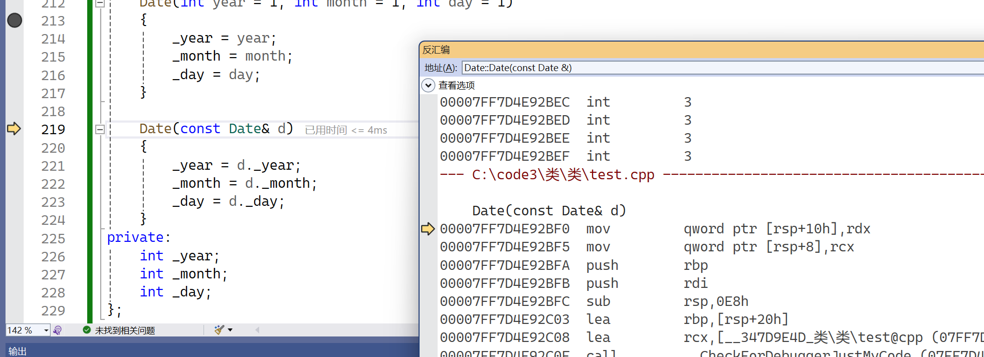 }我们没有提供拷贝构造函数,编译器默认提供,我们来看运行结果: