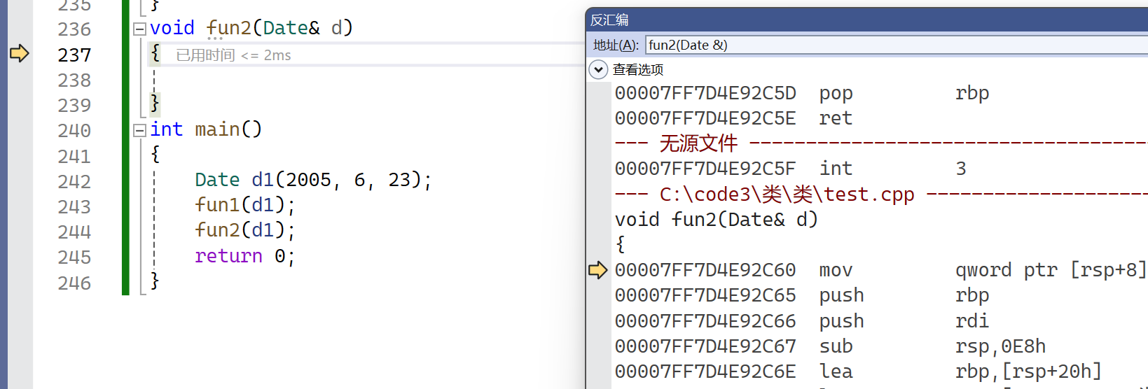 在这里按F11,我们目的是进入fun1,函数,这里却跳入拷贝构造函数