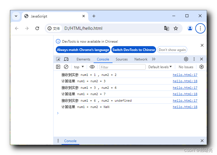 console.log("计算结果 num1 + num2 = " + (num1 + num2));