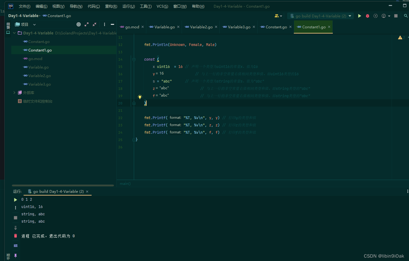 const identifier [type] = value常量可以是布尔型、数字型(整数型、浮点型和复数)和字符串型。常量的值在编译时确定,不可以被修改。