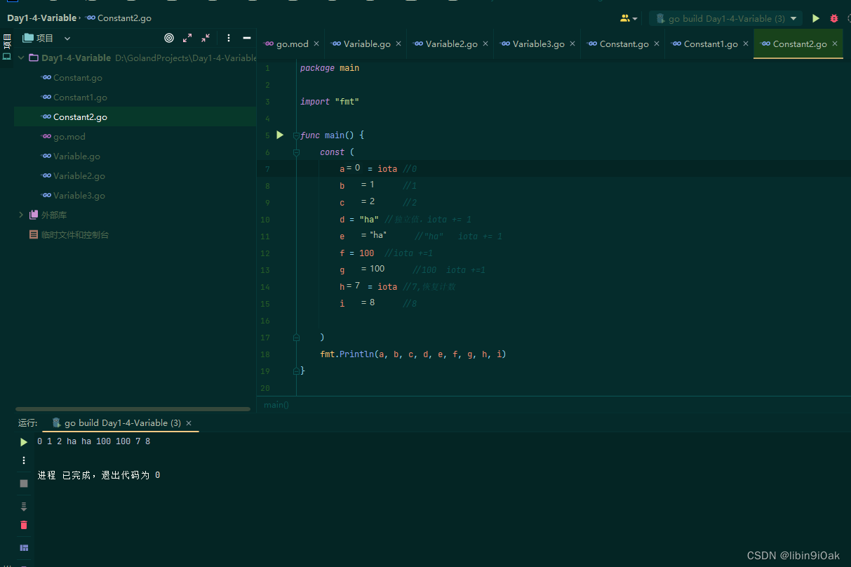 fmt.Println(a, b, c) // 打印多重赋值的常量