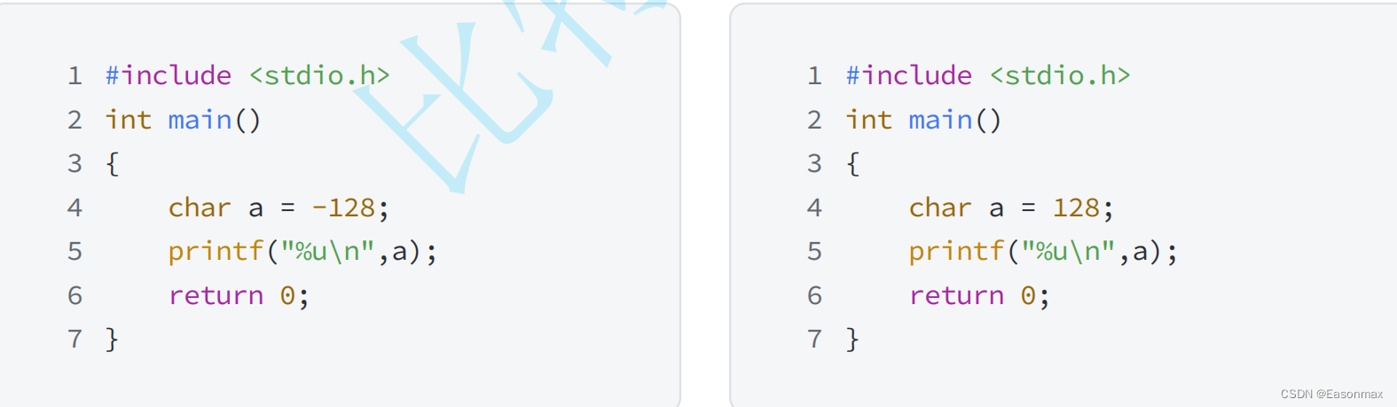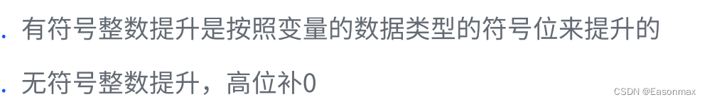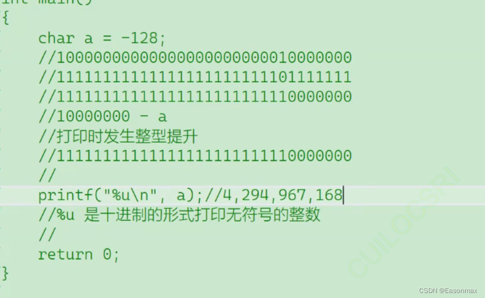 //⽆符号整形提升,⾼位补0对于超过四个字节的整数将其变小则是直接切割,没有任何规则 。(适用于任何字节大的转换为字节小的)