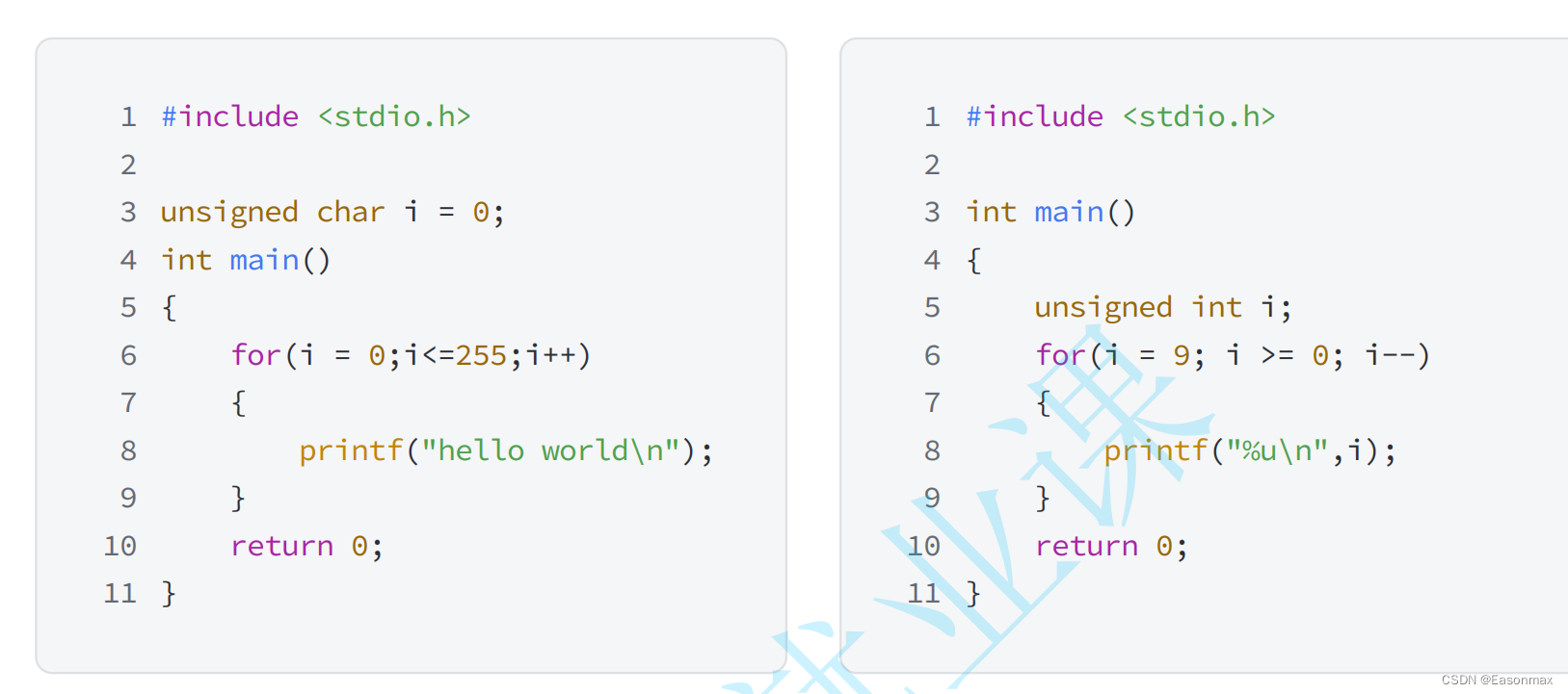当然不只是上述的 signed char 和unsigned char有以上循环,其他像short,int,long所有类型只要它们有范围,就都会有循环(区别在于循环较大还是较小)。