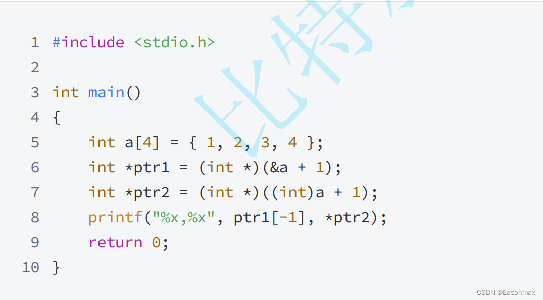 这些题都涉及了整数在内存中的存储以及计算,关于这些知识点在前面我已经全部说明完毕,所以只要你搞懂了这些知识点做这些题目就很简单。