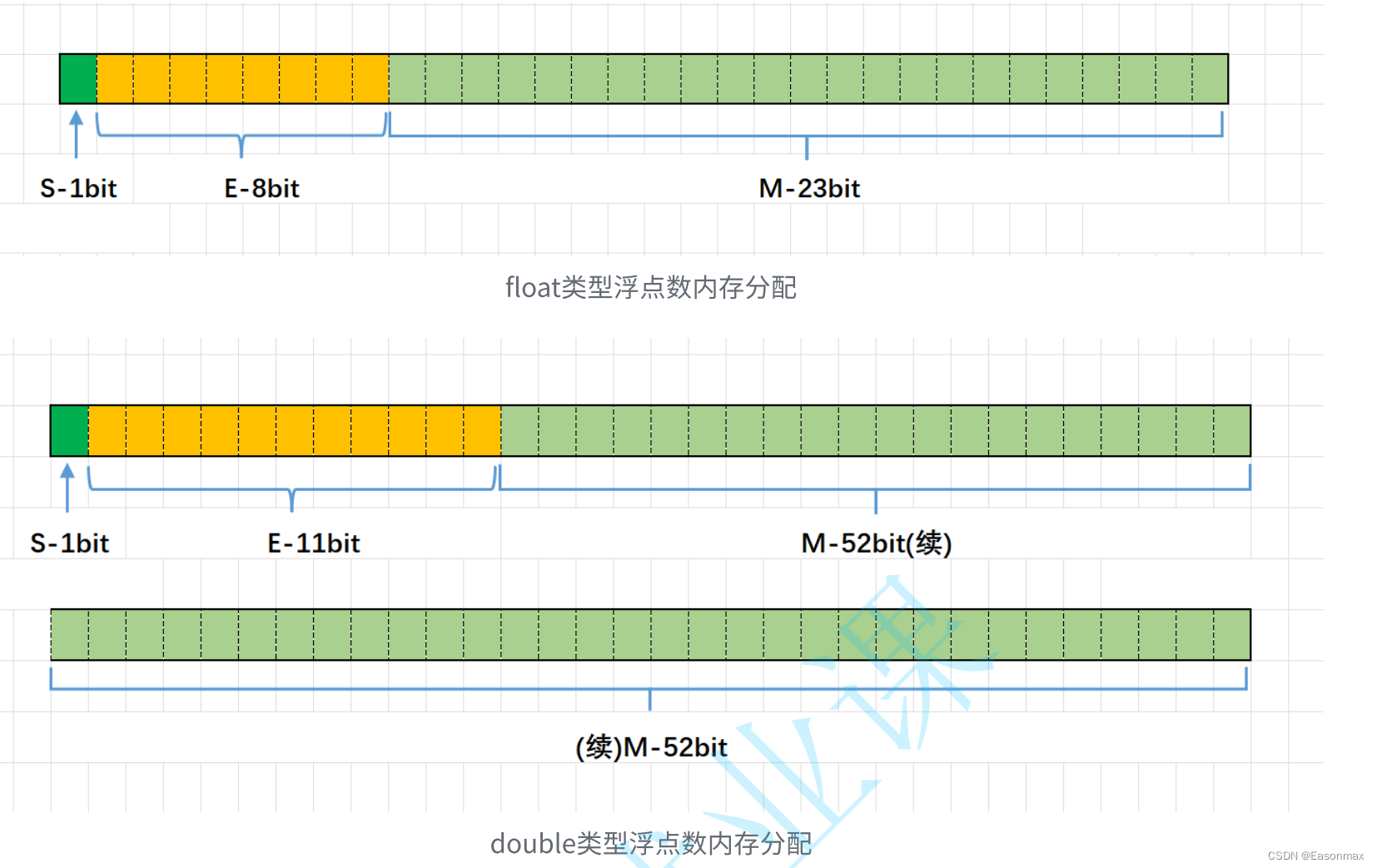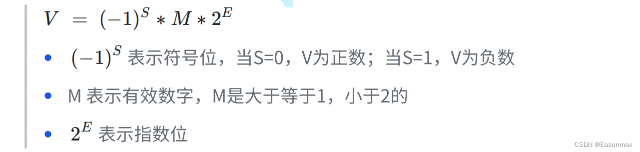 对于32位的浮点数,最⾼的1位存储符号位S,接着的8位存储指数E,剩下的23位存储有效数字