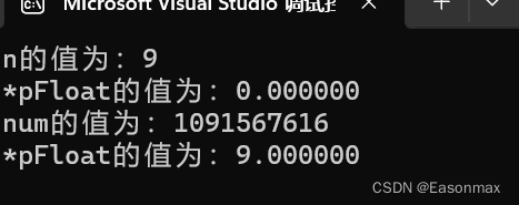 }首先n和*pfloat开始时其数据都是整形,第一个打印不用说绝对是九