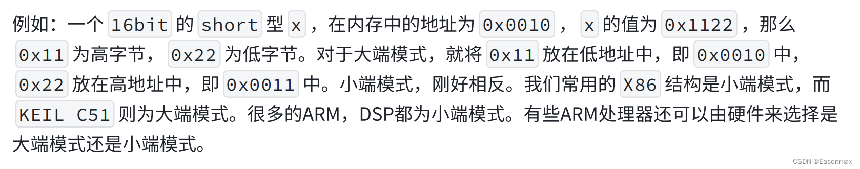 对于内部字节为多个的单个数据来说,有大小端存储模式