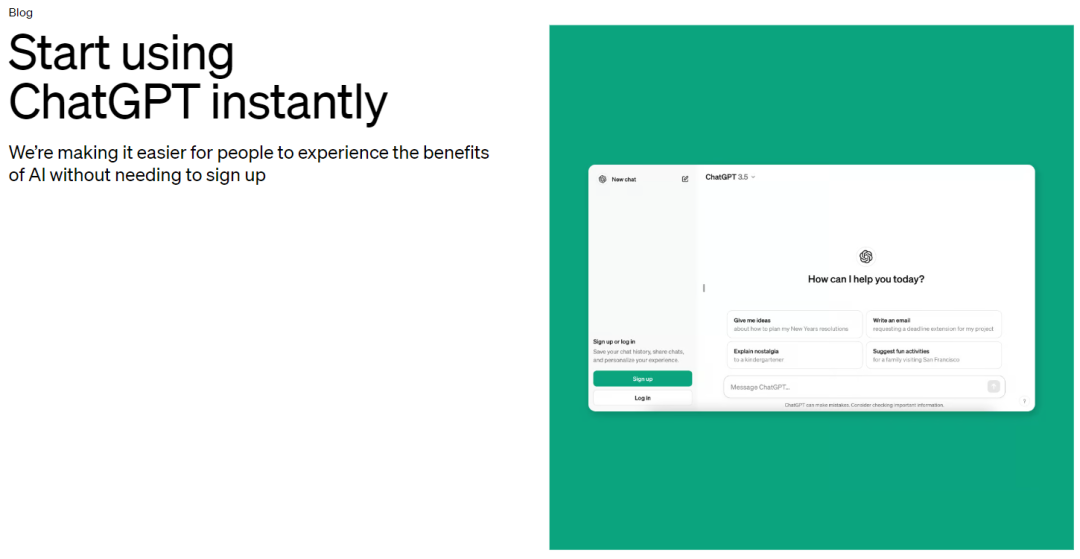 虽然是在 4 月 1 日公布的消息,但这并不是一个愚人节玩笑。OpenAI 在公告中写道:“我们的使命是让像 ChatGPT 这样的工具广泛可用,以便人们体验 AI 带来的好处。有来自 185 个国家的 1 亿多人每周使用 ChatGPT 来学习新知识、寻找创意灵感,并获得问题的答案。从今天开始,您无需注册即可使用 ChatGPT。”
