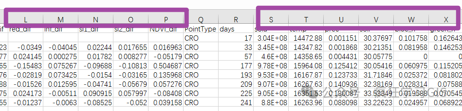 首先,我们明确一下本文的需求。在一个文件夹内,有大量的Excel表格文件(以.csv格式文件为例),其中每一个文件都有着类似如下图所示的数据特征;我们希望,对于下图中紫色框内的列,其中的数据部分(每一列都有一个列名,这个列名不算数据部分)都向上提升一行(比如原本数据部分的第2行变到第1行,原本第3行变到第2行,以此类推)。