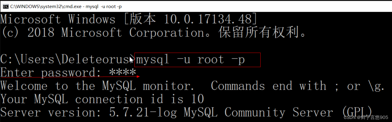 配置MySQL命令到PATH路径之后,访问MySQL的时候就可以在任意命令行窗口上执行mysql -u root -p命令连接数据库服务。