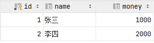 insert into account(name, money) VALUES ('张三',2000), ('李四',2000);