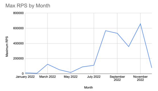 2022年下半年,受保护的游戏网站遭受的应用程序DDoS攻击明显增多。这是因为此期间热门游戏经常发布,DDoS攻击量经常增加。