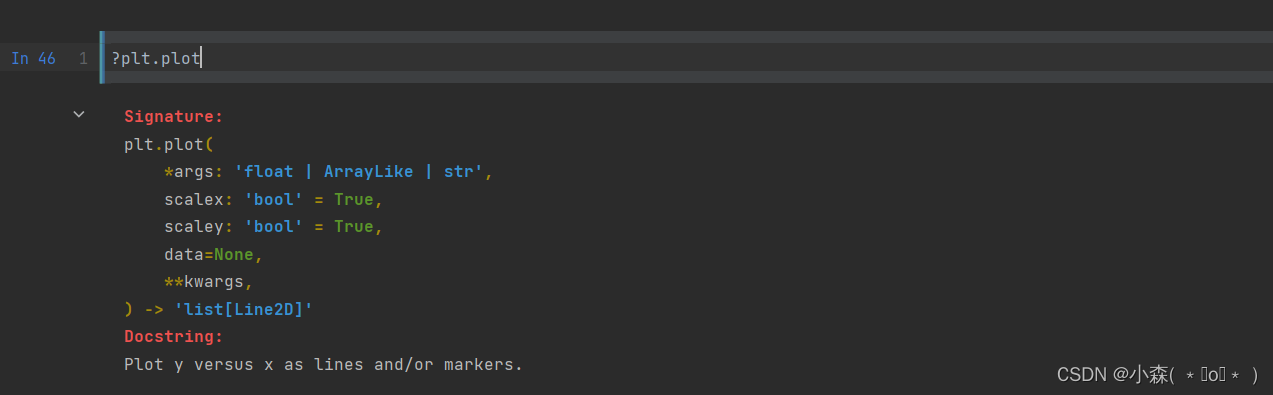 plt.show()当我们不知道某个方法的API时,可以使用?+方法,查看各个参数