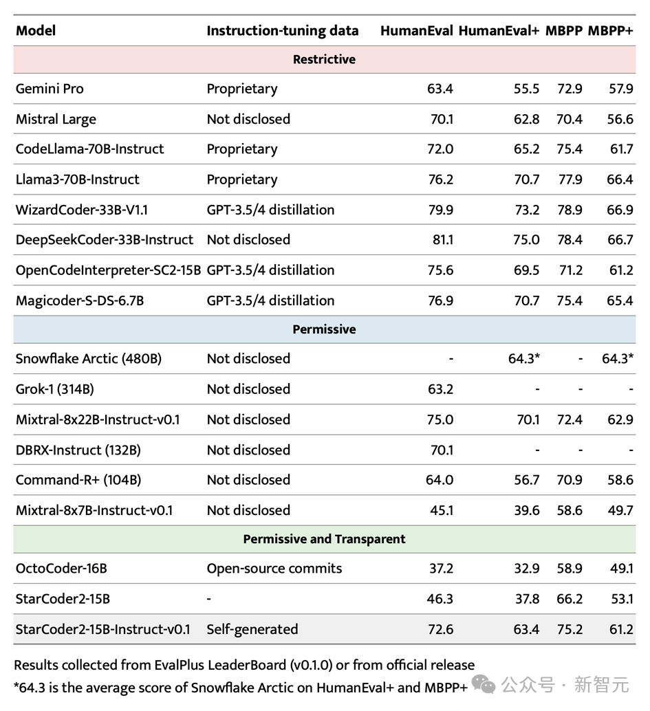 即便与拥有限制性许可的大型强力模型如Gemini Pro和Mistral Large相比,StarCoder2-15B-Instruct依然展现出卓越的性能,并与CodeLlama-70B-Instruct平分秋色。更令人瞩目的是,StarCoder2-15B-Instruct完全依赖于自生成数据进行训练,其性能却能与基于GPT-3.5/4数据微调的OpenCodeInterpreter-SC2-15B相媲美。