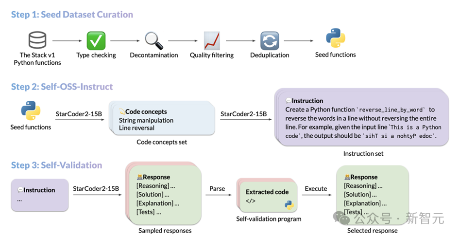 StarCoder2-Instruct的数据生成流程主要包括三个核心步骤: