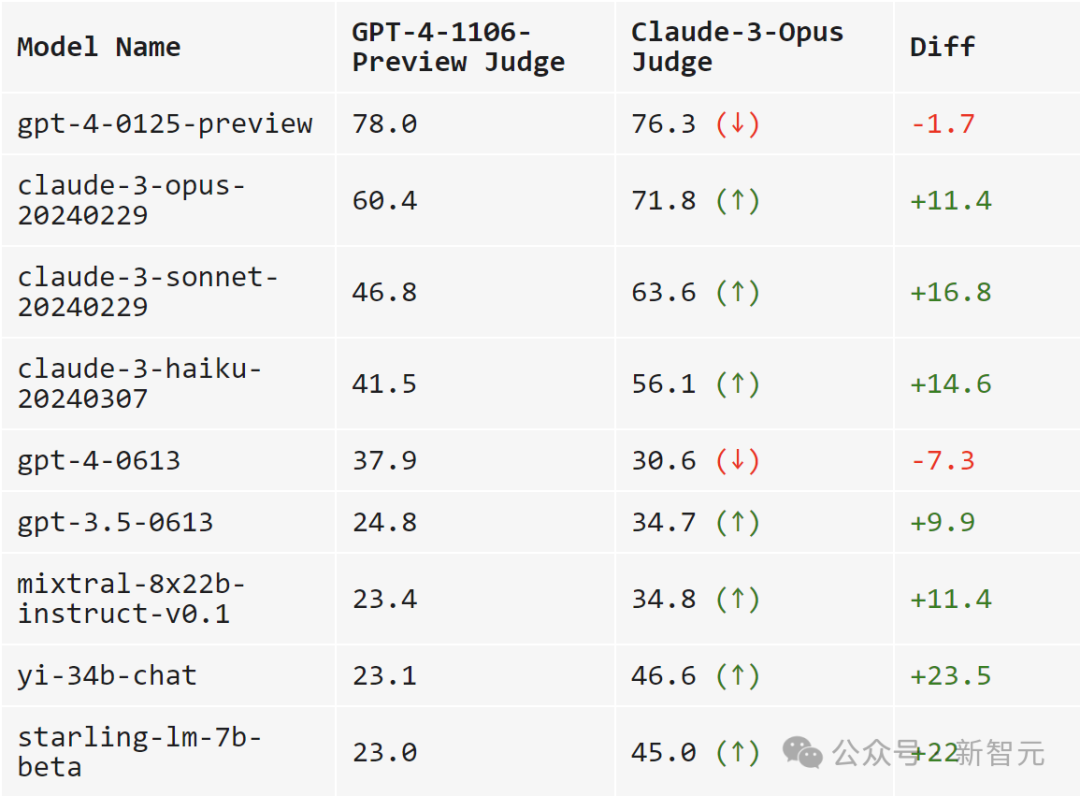 而当使用Claude-3时,模型的得分大多都提高了不少:自家的模型肯定要照顾,开源模型也很喜欢(Mixtral、Yi、Starling),gpt-4-0125-preview也确实比我更好。