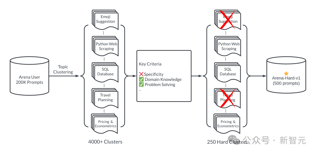 这个「好」体现在两方面:多样性和复杂性。下图展示了Arena-Hard的工作流: