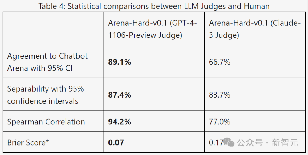 这说明Arena Hard的评测非常接近人类的偏好(89.1%)。