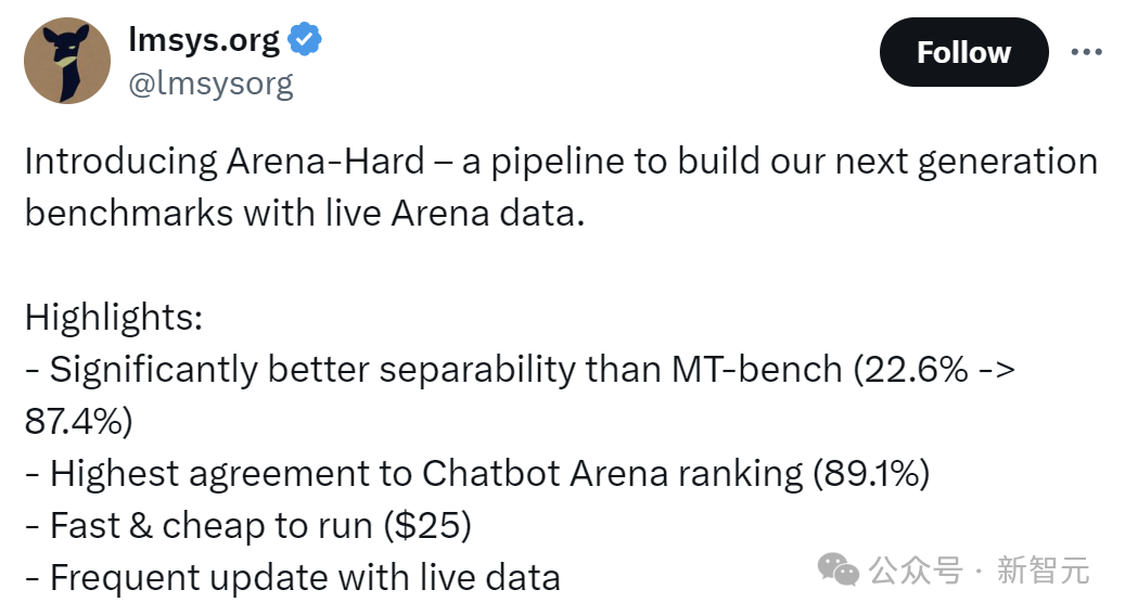 人家竞技场背后的组织LMSYS,已经悄悄完成了成果转化:从实战中诞生的最有说服力的基准测试——Arena-Hard。