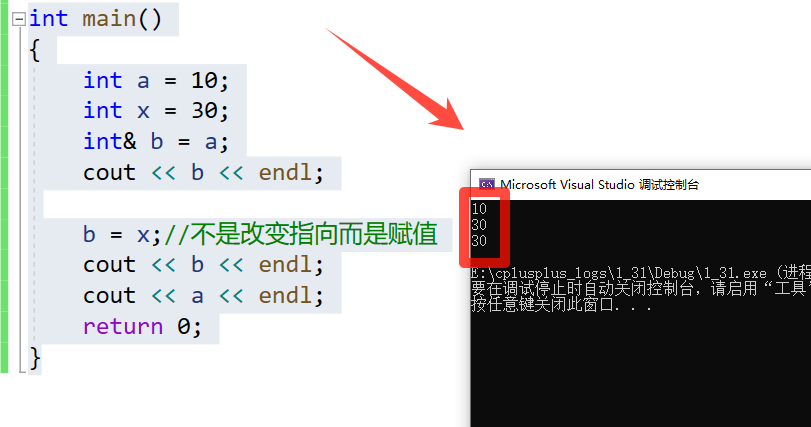 b = x;//不是改变指向而是赋值