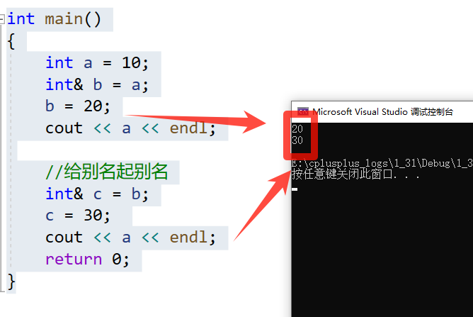 这时就有很多人说了这引用不就相当于指针吗?对的引用和指针的作用其实是差不多的,对变量引用的修改会影响变量,而指针也是对指针的修改会影响指针所指向的内容: