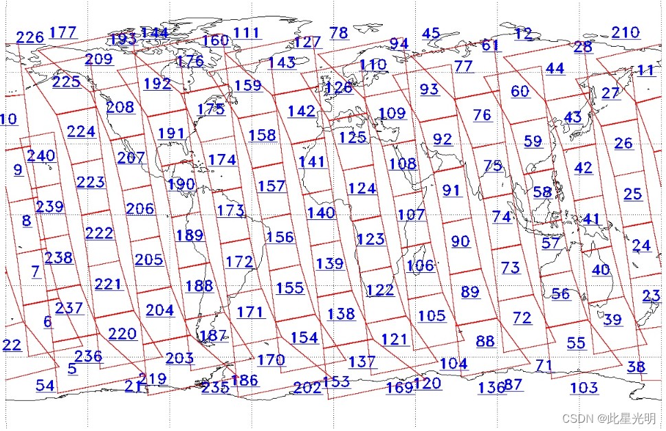 大气红外探测仪(AIRS)是第二个地球观测系统(EOS)极轨道平台 EOS Aqua 上的一个光栅分光计(R = 1200)。与高级微波探测装置(AMSU)和巴西湿度探测仪(HSB)相结合,AIRS 构成了一个由可见光、红外和微波传感器组成的创新型大气探测组。一个 AIRS 粒度被设定为 6 分钟数据、30 个跨轨道脚印和 45 条沿轨道线。AIRS 颗粒地图产品包括 PDF 和 JPG 格式的颗粒覆盖图像。这些图像为每日图像,但每 6 分钟更新一次,以捕捉任何新的可用颗粒。颗粒按升序、降序、南北半球进行组合,地图采用全球圆柱投影和卫星投影,以便更好地查看。