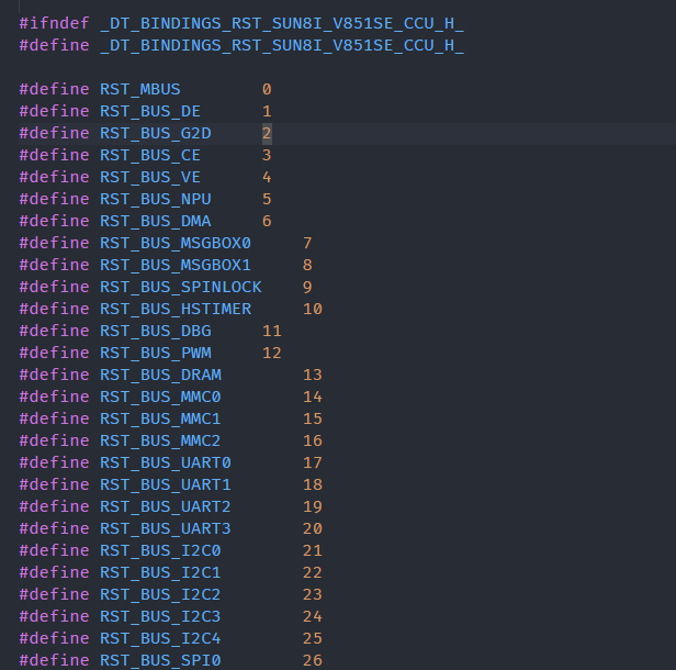 进入 include/dt-bindings/reset 新建文件 sun8i-v851se-ccu.h 将 RST 填入