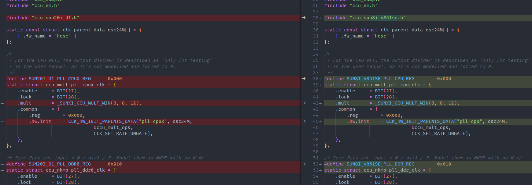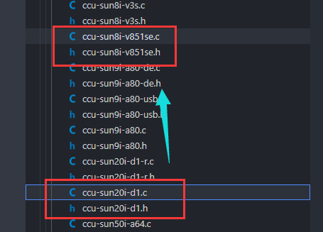 进入 drivers/clk/sunxi-ng 找到 sunxi-ng clk 驱动,复制文件ccu-sun20i-d1.c 和 ccu-sun20i-d1.h 文件并改名为 ccu-sun8i-v851se.c ,ccu-sun8i-v851se.h 作为模板。