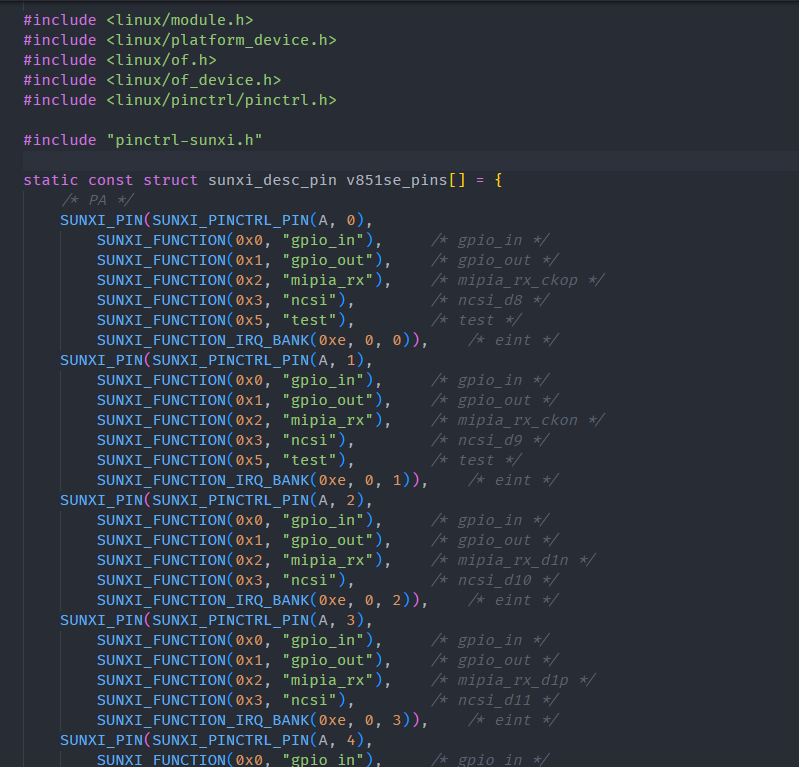 前往drivers/pinctrl/sunxi/ 新建文件 pinctrl-sun8i-v851se.c
