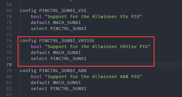 同样的,修改 drivers/pinctrl/sunxi/Kconfig 增加选项